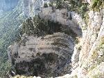 On voit bien la "bonne" vire et la sente qui la parcoure et à gauche le rocher rond (?)