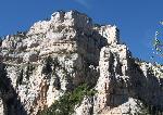 Depuis le GR en contrebas, les vires Sombardou haute et basse avec le rocher rond à droite.