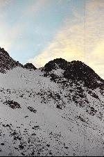 a tous les surfeurs : la descente derriere l'auteur ainsi que les traces. Le couloir n'est pas visible cache qu'il est par le Tsoukine 3325 m sur la droite