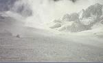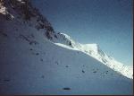 A 2380 m, sur le Glacier des Pélerins. Méfiez-vous des pentes nord de l'Aiguille du Midi...