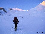 Après une montée sous les étoiles, deux heures d'attente à Vallot dans la neige et le brouillard et une descente dans la poisse... nous retrouvons le soleil peu après le Petit Plateau!