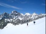 Crampons ou skis? A chacun de voir comment il sera le plus à l'aise sur la neige du jour. Compter quelques minutes de descente à ski du sommet jusqu'au col du Grépillon à 3550m et une quarantaine en crampons ce samedi.