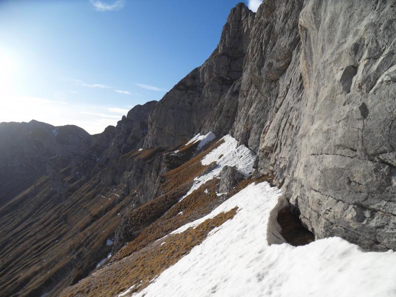 Au loin, le pas de la Balme. On se rend mieux compte de ce point de vue de la différence de niveau entre les deux portions de la vire.