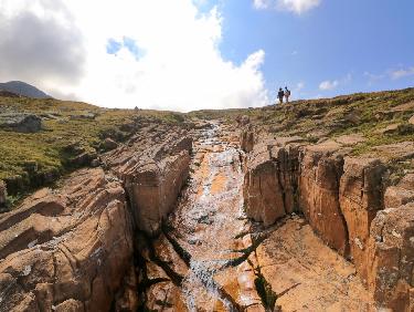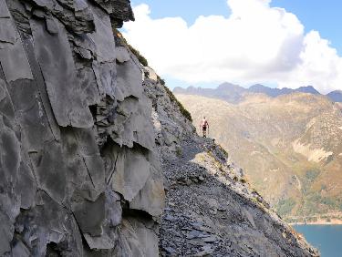 Peu avant le Lac de la Fare, monter plein Est (de nombreux kairns) pour rejoindre le plateau supérieur en passant par un goulet pierreux et glissant.(R3)...