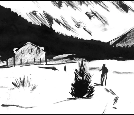 En 2020, au moment où il débute le dessin de La Dernière Reine, Jean-Marc Rochette fait le choix de s’installer à l’année aux Étages, dans le massif des Écrins. Le hameau n’est plus habité l’hiver depuis les années 60. Coupée par plusieurs couloirs d’avalanche, sa route d’accès se ferme en décembre, pour ouvrir en mars. C’est dans cette île de glace et de neige, que l’auteur entame un hivernage en forme de voyage intérieur, où le quotidien côtoie l’extraordinaire.