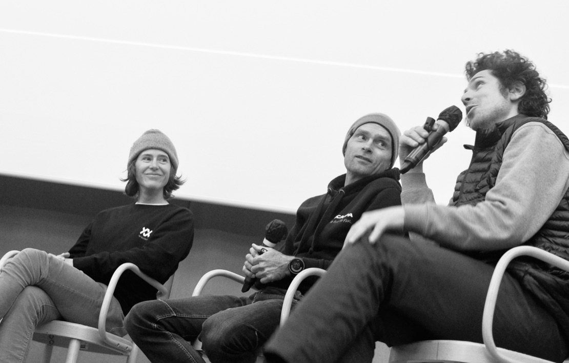 Ils étaient là, devant nous, entres jolis mots, questionnements, troubles et sourires à tenter d'expliquer les méandres et joies qui les mènent à se faufiler dans les pentes raides et, combien ils sont tous les quatre à des années lumières de vouloir se mettre en danger... bien ô contraire !