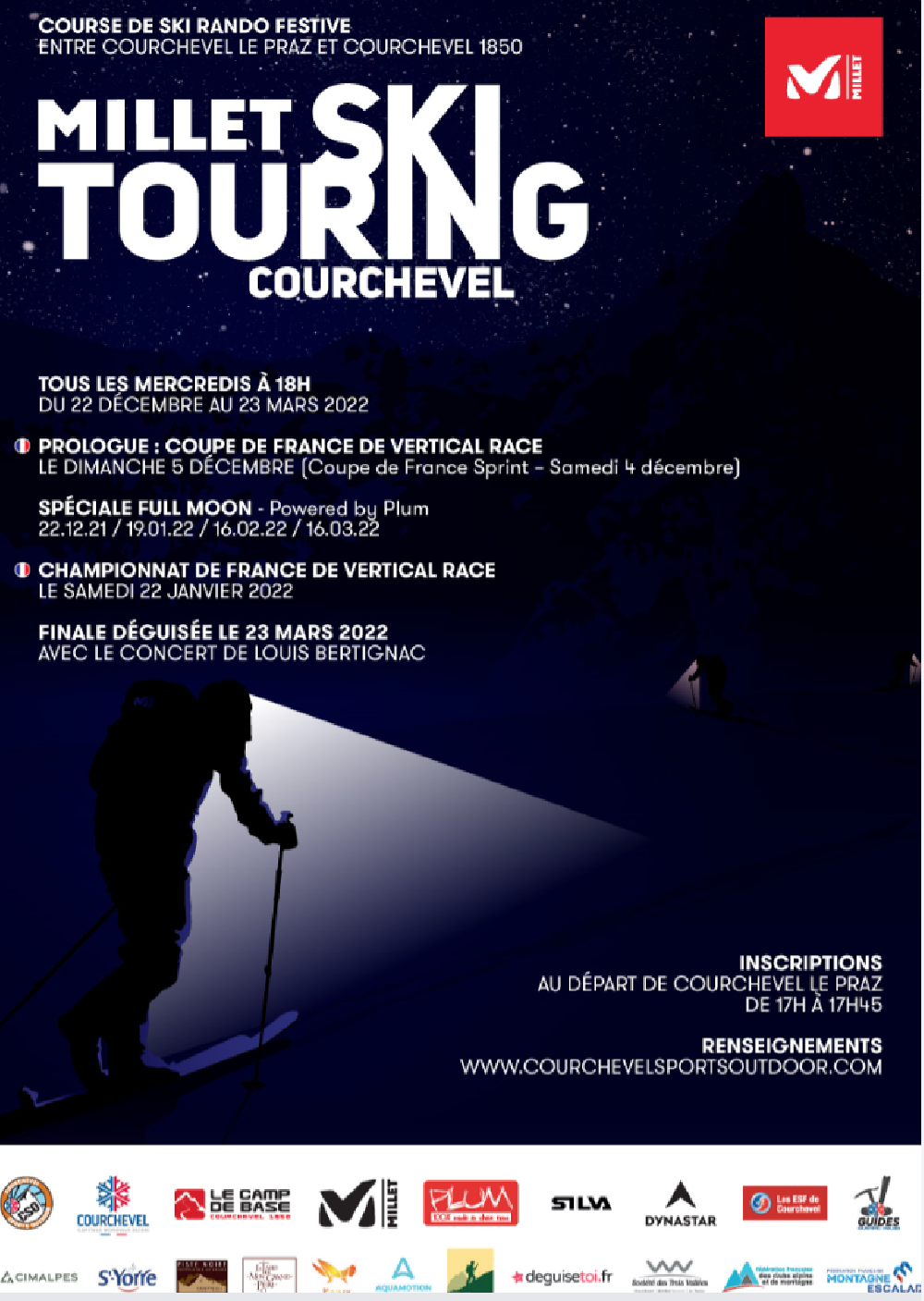 Skieurs-alpinistes, ne ratez pas l’édition 2022 des MILLET SKI TOURING® COURCHEVEL : Chaussez vos skis de rando, rendez-vous au Praz à l'Alpinuim pour pour prendre le départ de la saison 12 des Millet Ski Touring Courchevel sur un parcours de 3,2km et 500m de dénivelé positif en contre-la-montre jusqu'à Courchevel 1850 sur le front de neige de la Croisette !