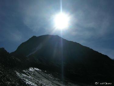 Aiguile du gouter depuis Nid d'aigle, lieu de départ de l'ascension et à gauche du sommet, le refuge.