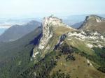 Depuis le Trou, vue vers le nord sur le Tête de Paccaly et la Poiinte Percée. Au centre de la photo, le décollage... le meilleur se trouve au sommet de la bosse vers laquelle les deux sentiers semblent converger..