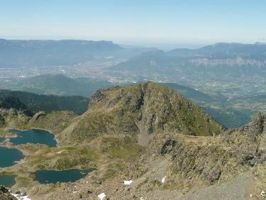 Du sommet du Grand Van: les lacs Robert et le Grand Eulier mais aussi Grenoble et la Chartreuse.