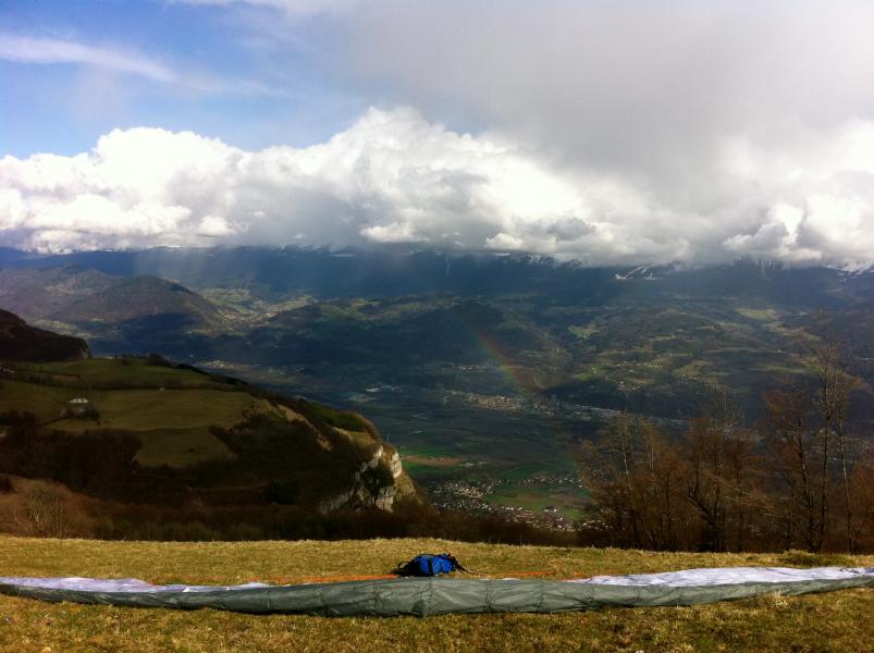 Le Champ de Baure est splendide. La Dent de Crolles resplendit et cet arc-en-ciel est la cerise sur la gâteau. Trop trop beau! Profitons-en!