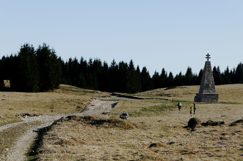 Le monument dédié au maquis au centre de la prairie.
