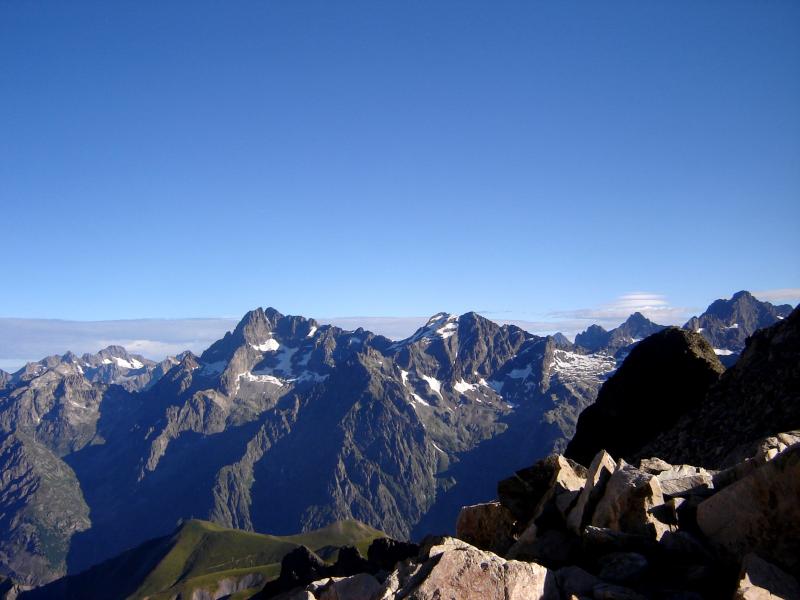 La Roche de la Muzelle, l'Olan, la Cime du Vallon, les Rouies. Photo prise au sommet du Pic de Parières