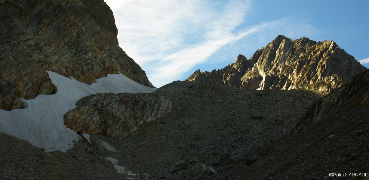 La langue du Glacier de Combe Madame vers 2200 m en contrebas de la crête de la Marmottane