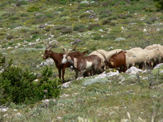 Chèvres et moutons en dessous du sommet