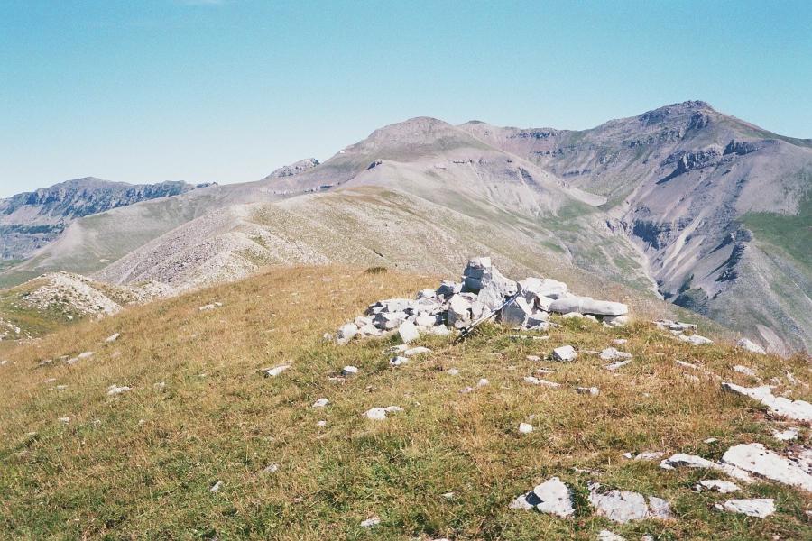 Avec au fond : le gros dôme de Pierre Grosse au milieu, derrière lui (petite calotte noire) la Cime Fourchias, et tout à droite le Saint-Honorat.