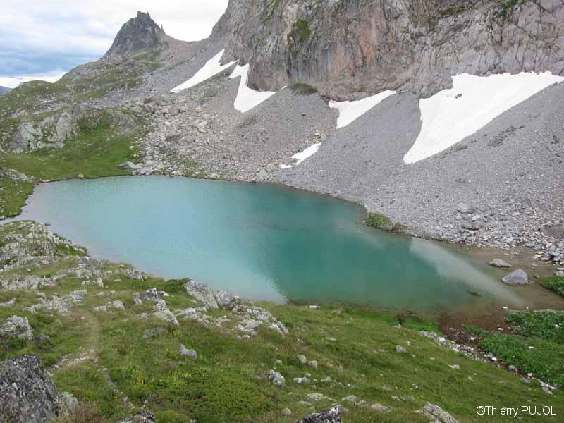 Lac de la Clarée et versant nord du col 2583 (avec son campanile)