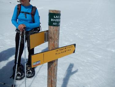 Au Lac sous Bousson, le panneau directionnel vers le Col Chabaud