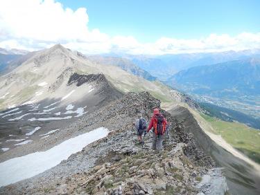 Nous commençons à descendre sur l'arête nord-est, vers le col 2606.