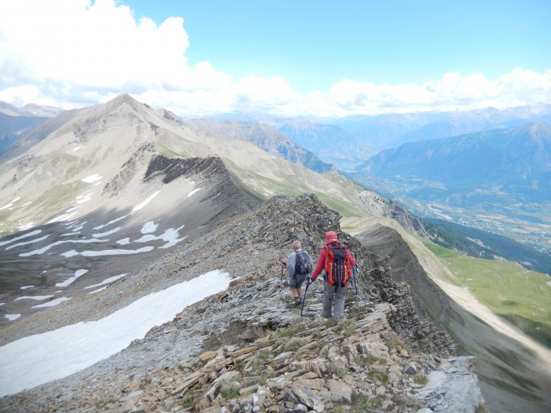 On commence à deviner, à droite de l'arête, le vallon dans lequel nous allons descendre.