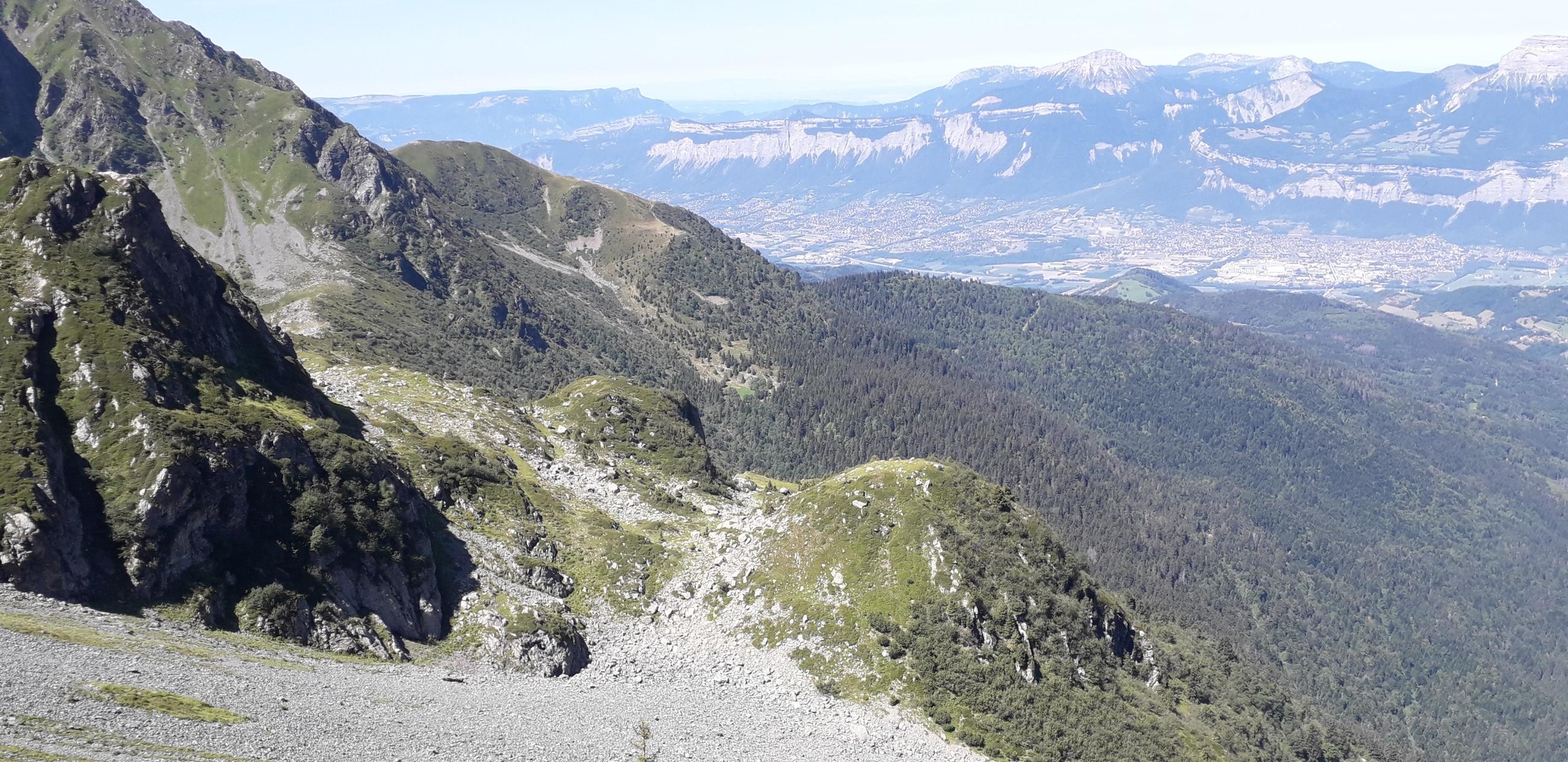 Vue arrière sur le col 2015m, après avoir traversé le pierrier en diagonale.