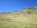 Après la montée dans l'alpage comme mise en jambe après 3h de route, voilà déjà une difficulté imprévue: le passage des 1ers rochers est une dalle gravillonneuse et il me faudra quelques hésitations pour la négocier (bon, y a pas que moi!, tout le monde en causait au sommet de ce passage!). C'est d'ailleurs le seul passage "difficile" de cette longue rando.