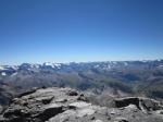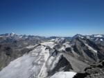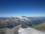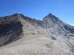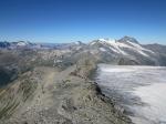 Ensuite c'est la longue et belle montée sur la crête, puis on côtoie le glacier. Ca devient sérieux, et la très inclinée pente terminale me stresse un peu...