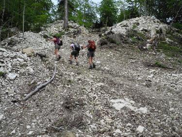 Cette boucle semble idéale (plus encore peut-être que celle au départ du Bourg du Dessus ?) pour découvrir au mieux les spécificités de ces lieux. Certes ça commence par un chemin particulièrement ravagé (avec des passages raides inhabituels pour un chemin forestier), mais le « vieux » sentier qui lui fait suite et débouche sur Fessole au milieu d’un immense champ de gentianes offre un contraste saisissant !