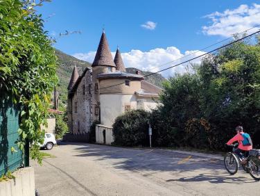 Si la montée par Corenc est relativement douce, la descente par les pistes du versant nord est autrement plus raide et la boue ne facilite pas l'équilibre déjà précaire imposé par les nombreux cailloux. Il convient d'être prudents et de bien placer la roue avant entre les blocs branlants. Sous le col de Clemencières, on fera la tournée des popotes en allant saluer quelques amis et enfin Jeannie Longo à la poste de Saint Martin le Vinoux. C'est en effet dans l'édifice postal où nous allons chercher un recommandé que nous trouvons notre star du vélo. Quel honneur de finir notre tour en lui racontant notre modeste périple sur les sentiers qu'elle connait par cœur.