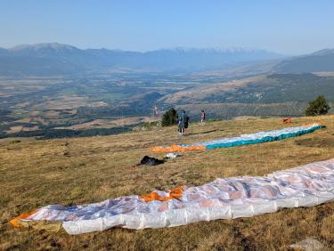 Les biplaceurs profitent d'un léger face, alors que pour nous le vent est passé travers cul. Je décolle en courant comme un finaliste du 100m aux JO.